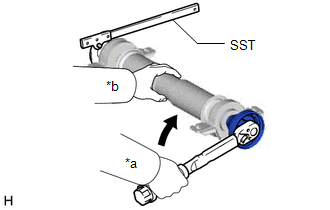 | (d) Using SST to hold the universal joint flange, press the center No. 2 support bearing assembly into position by tightening a new nut and the washer. SST: 09330-00021 Torque: 181.5 N·m {1851 kgf·cm, 134 ft·lbf} |