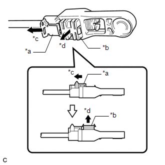 | (i) Slide the slider of the transmission control cable assembly and pull the lock piece outward as shown in the illustration. |