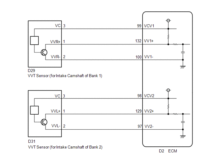 | Related DTCs | P0340: VVT sensor (bank 1) verify pulse input P0342: VVT sensor (bank 1) range check (low voltage) P0343: VVT sensor (bank 1) range check (high voltage) P0345: VVT sensor (bank 2) verify pulse input P0347: VVT sensor (bank 2) range check (low voltage) P0348: VVT sensor (bank 2) range check (high voltage) |