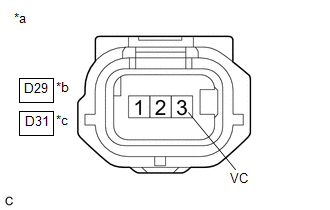| D31-3 (VC) - Body ground | Engine switch on (IG) | 4.5 to 5.5 V |