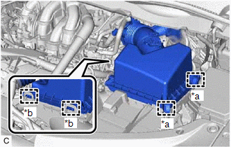 (f) Open the air cleaner cap sub-assembly and remove the air cleaner filter element sub-assembly from the air cleaner case sub-assembly.