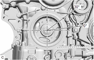 | (a) Turn the crankshaft approximately 30° counterclockwise so that there is some slack in the chain sub-assembly. HINT: This prevents the valves and pistons from interfering with each other. |