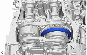 | (a) Remove the camshaft timing gear assembly and No. 2 chain sub-assembly. NOTICE: Do not drop the chain sub-assembly into the gap between the engine and timing chain cover assembly. |