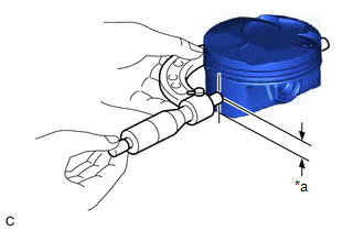 | (a) Using a caliper gauge, measure the inside diameter of the piston pin hole. Standard Piston Pin Hole Inside Diameter: