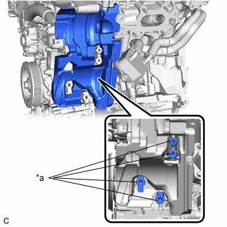 INSTALLATION PROCEDURE 1. SET NO. 1 CYLINDER TO TDC (COMPRESSION) (a) Confirm that the timing mark (cutout) on the crankshaft pulley is aligned with the "0" timing mark of the timing chain cover assembly. *a Timing Mark (Cutout) *b "0" Timing Mark 2. SET CAMSHAFT TIM ...