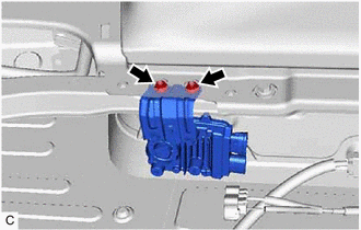 | (a) Disconnect the 2 fuel pump control ECU assembly connectors. |