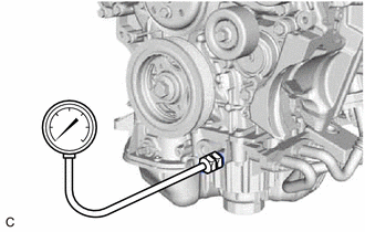 If the result is not as specified, check the quality of the engine oil and check the oil paths for clogging. Repair or replace if necessary. If the engine oil pressure is still not as specified, check the timing chain cover sub-assembly.