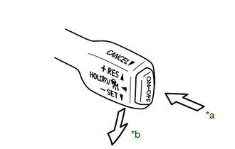 (4) Push and hold the cruise control main switch to -SET and check that vehicle speed decreases in 5 km/h or 5 mph increments.