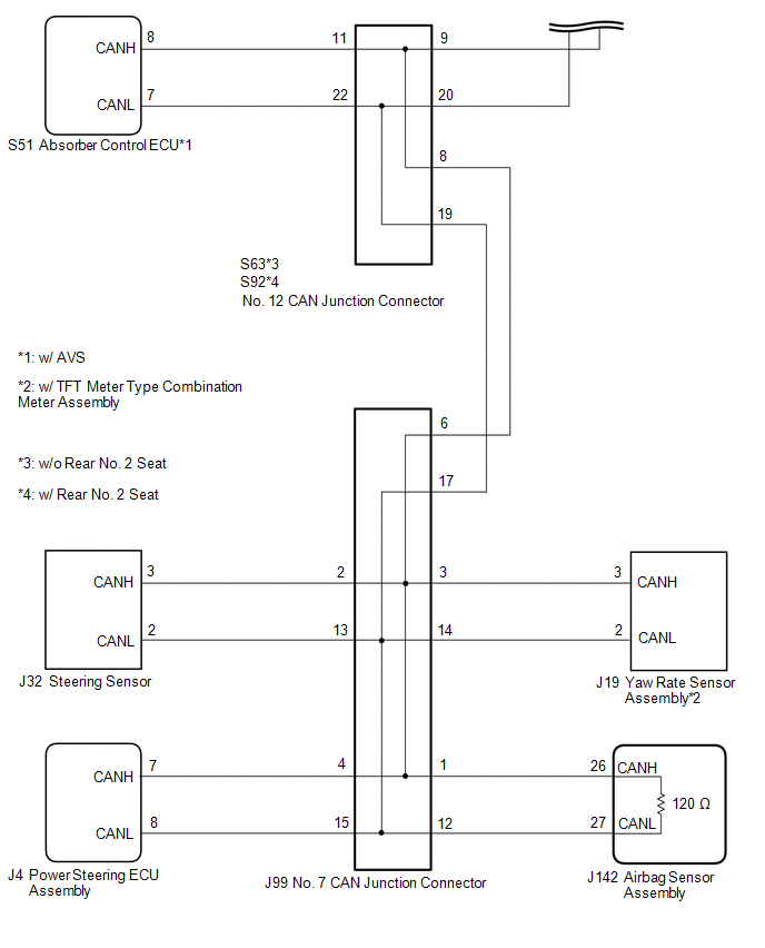 | D | | REPAIR OR REPLACE CAN MAIN BUS LINES OR CONNECTOR (AIRBAG SENSOR ASSEMBLY - NO. 7 CAN JUNCTION CONNECTOR) |