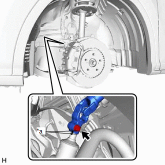 | (a) Remove the nut and separate the front stabilizer link assembly LH from the front stabilizer bar. HINT: If the ball joint turns together with the nut, use a 6 mm hexagon socket wrench to hold the stud bolt. |