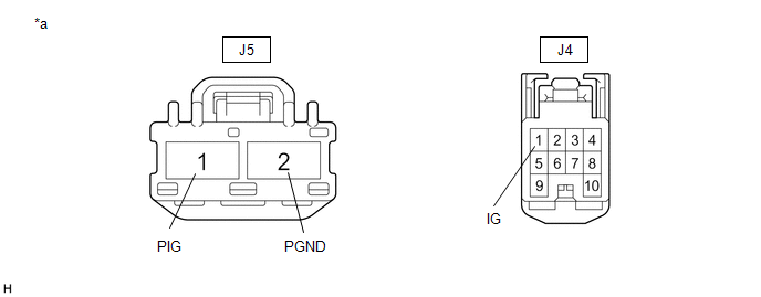 | J5-1 (PIG) - Body ground | Engine switch on (IG) | 9 to 16 V |