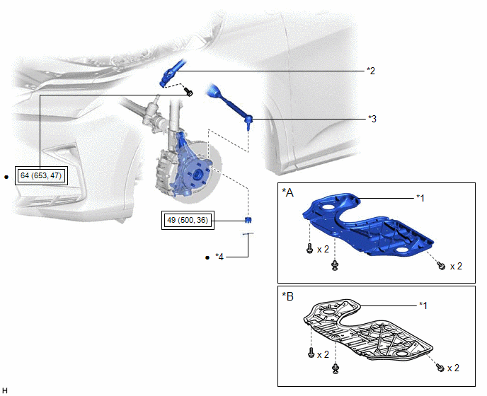| *1 | FRONT NO. 1 STABILIZER BRACKET LH | *2 | FRONT NO. 1 STABILIZER BRACKET RH |