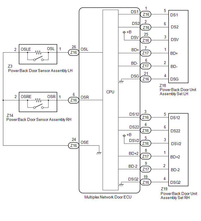 | 9. | CHECK HARNESS AND CONNECTOR (POWER BACK DOOR SENSOR ASSEMBLY LH - MULTIPLEX NETWORK DOOR ECU) |