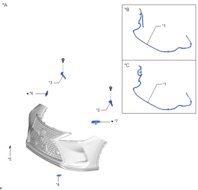 | *5 | FRONT BUMPER HOLE COVER ASSEMBLY LH | *6 | FRONT BUMPER HOLE COVER ASSEMBLY RH |
