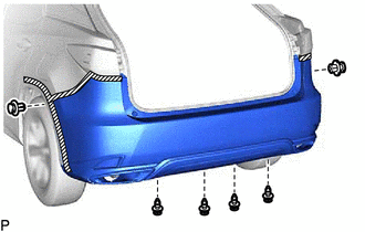 The necessary procedures (adjustment, calibration, initialization, or registration) that must be performed after parts are removed and installed, or replaced during rear bumper assembly removal/installation are shown below.