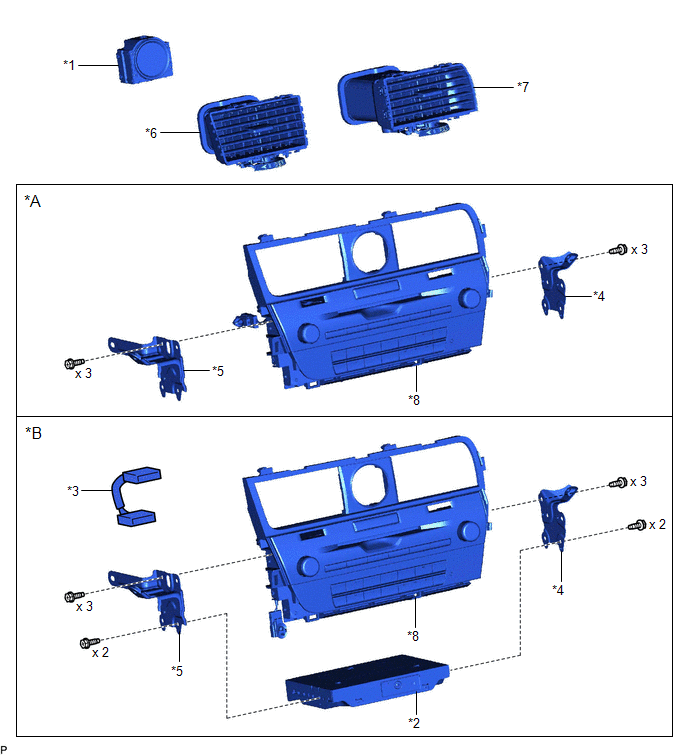 | *A | w/o Navigation ECU | *B | w/ Navigation ECU |
