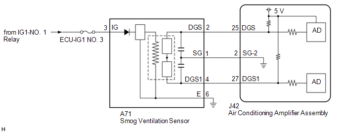 | 3. | CHECK HARNESS AND CONNECTOR (SMOG VENTILATION SENSOR - AIR CONDITIONING AMPLIFIER ASSEMBLY) |