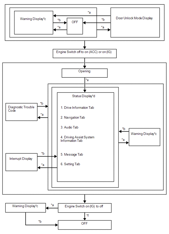 | (Each door open (vehicle stopped, engine switch off)) | - | - | Each door open (vehicle stopped, engine switch off) | Caution | |