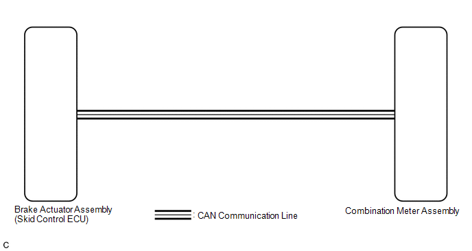 The combination meter assembly receives vehicle speed signals from the brake actuator assembly (skid control ECU) via CAN communication. The speed sensor detects the wheel speed and sends the appropriate signals to the brake actuator assembly (skid control ECU). The brake actuator assembly (skid control ECU) supplies power to the vehicle speed sensor. The brake actuator assembly (skid control ECU) detects vehicle speed signals based on pulses of the voltage.