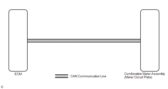 In this circuit, the combination meter assembly receives engine coolant temperature signals from the ECM via CAN communication. The combination meter assembly displays the engine coolant temperature that is calculated based on the data received from the ECM.