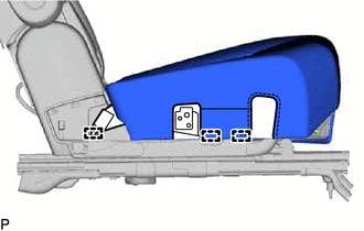 | (a) Disengage the 2 guides to disconnect the rubber band and remove the No. 2 seat cushion cover sub-assembly LH. |