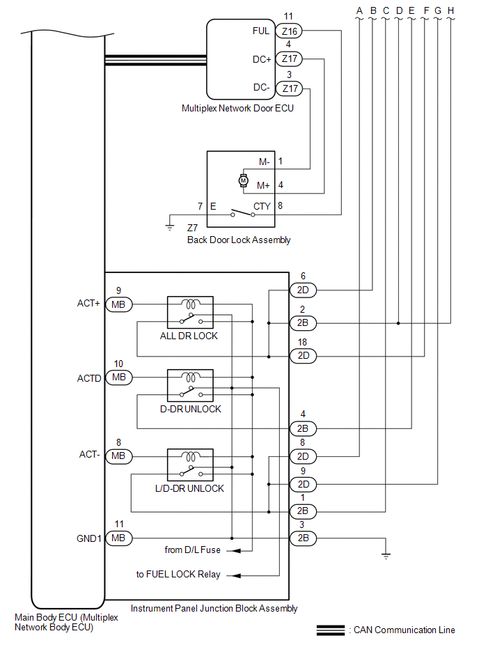 | Back door opener switch assembly | Sends switch operation signals to the certification ECU (smart key ECU assembly). |
