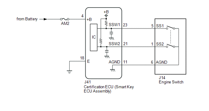 | 5. | CHECK HARNESS AND CONNECTOR (CERTIFICATION ECU (SMART KEY ECU ASSEMBLY) - ENGINE SWITCH) |