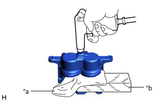 (b) Apply compressed air to remove the front disc brake piston from the front disc brake cylinder.
